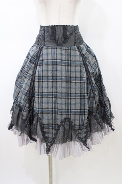 Ozz Croce / プリーツフリルチェックスカート グレー H-26-02-20-1030-OO-SK-KB-ZH
