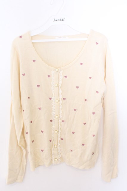 axes femme / ハート刺繍カーデ M キナリ O-26-02-19-1004-AX-TO-OW-OS