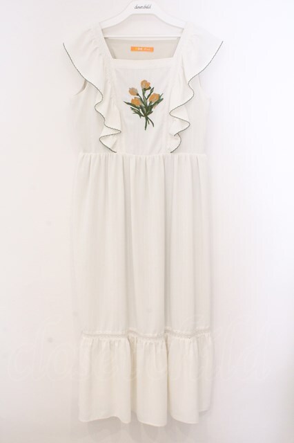 Fi.n.t / アートフラワー刺繍ショルダーフリルワンピース オフシロ O-26-02-21-076-CA-OP-IG-OS