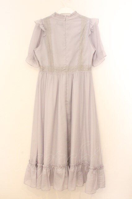 evelyn / 肩フリルリボンシアーロングワンピース グレー O-26-02-21-077-LO-OP-IG-OS
