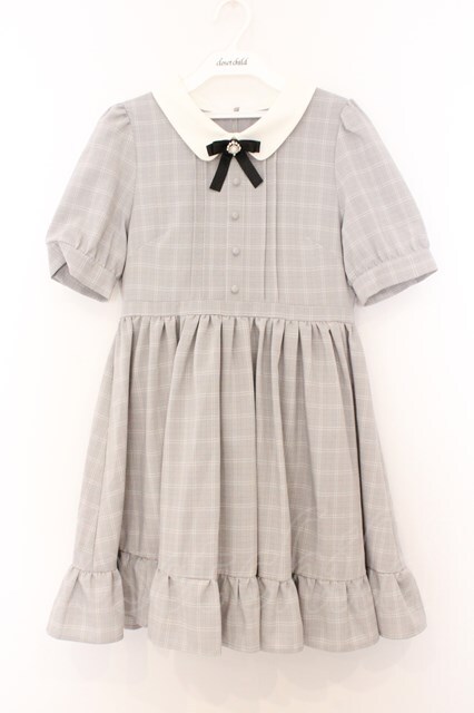 evelyn / Vフリルタック襟ワンピース グレー O-26-02-21-092-LO-OP-IG-OS