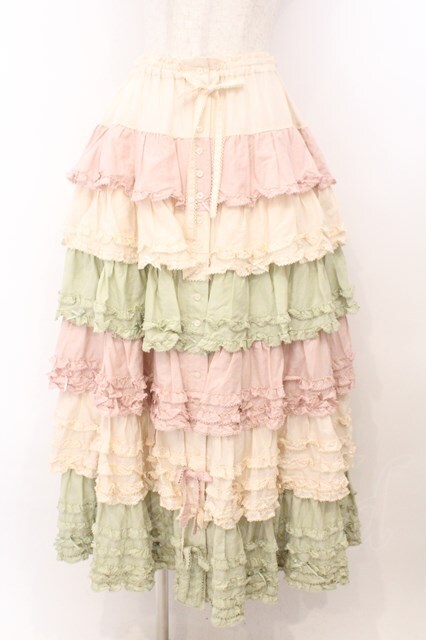 PINK HOUSE / 配色フリルスカート ピンク×ハッカ O-26-02-21-017-LO-SK-OW-OS [2100080000075226-O-26-02-21-017-LO-SK-OW-OS]