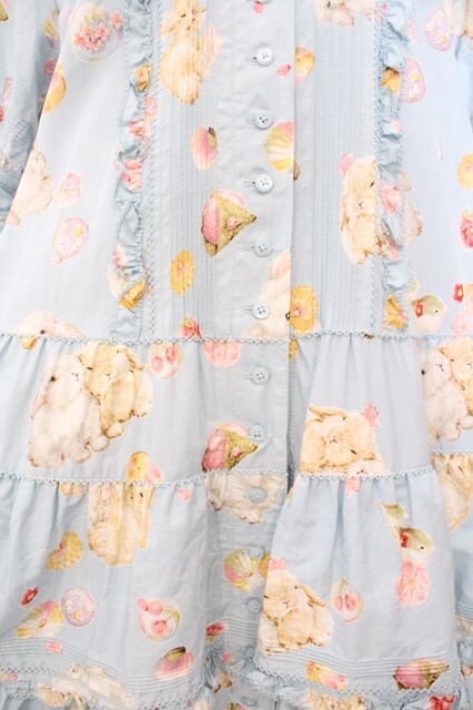 PINK HOUSE / 幸見うさぎプリントフリルワンピース ソライロ O-26-02-21-016-LO-OP-OW-OS