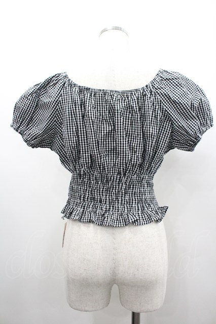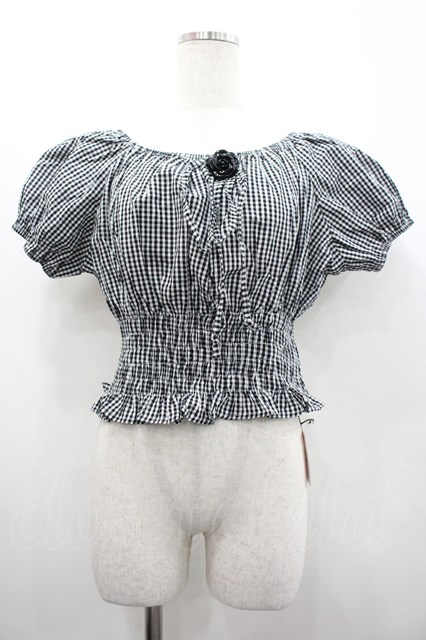 MARBLE / ギンガムチェック半袖ブラウス 黒X白 I-26-02-20-003-GO-BL-SA-ZI [2100060000050086-I-26-02-20-003-GO-BL-SA-ZI]