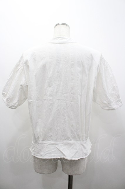 PINK HOUSE / 胸元リボンストライプ刺繍半袖ブラウス 白 I-26-02-20-019-LO-BL-SA-ZI [2100060000041132-I-26-02-20-019-LO-BL-SA-ZI]