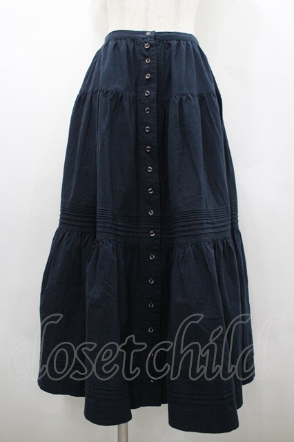 PINK HOUSE / ロゴボタン&ボーダーピンタックスカート 黒 I-26-02-20-082-LO-SK-SA-ZI [2100060000041135-I-26-02-20-082-LO-SK-SA-ZI]