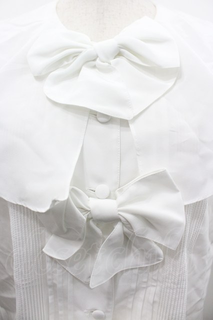 INGEBORG / 4つリボンケープ風半袖ブラウス 白 I-26-02-20-021-LO-BL-SA-ZI