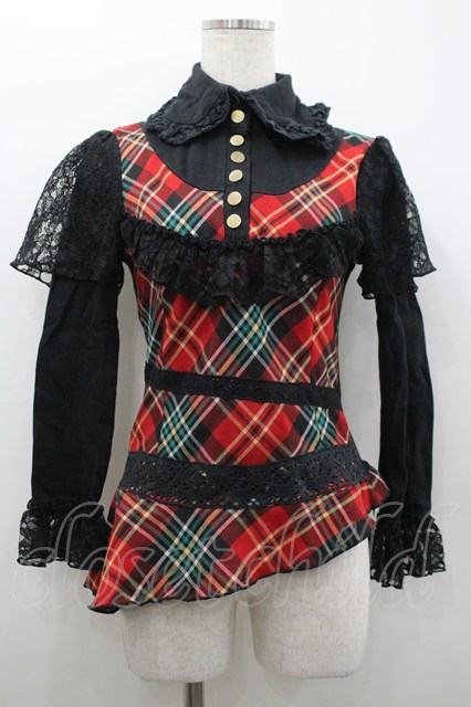 CHOICE / チェック&レース切替トップス 黒X赤チェック I-26-02-20-029-PU-TO-SA-ZI