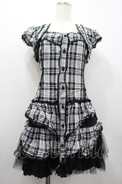 ALGONQUINS / ボレロ付キャミワンピース 黒X白チェック I-26-02-20-056-AL-OP-SA-ZI [2100060000040877-I-26-02-20-056-AL-OP-SA-ZI]