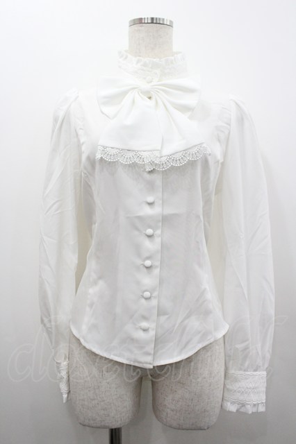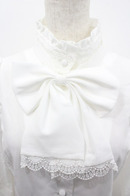 Sheglit / スタンドカラーリボンジャボブラウス 白 I-26-02-20-007-EL-BL-SA-ZI
