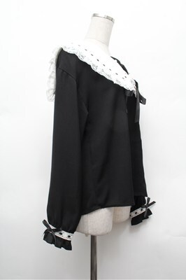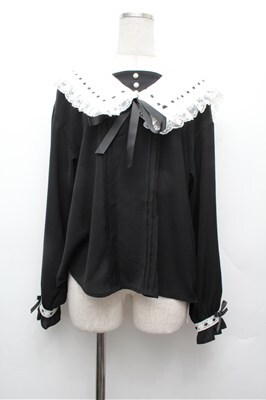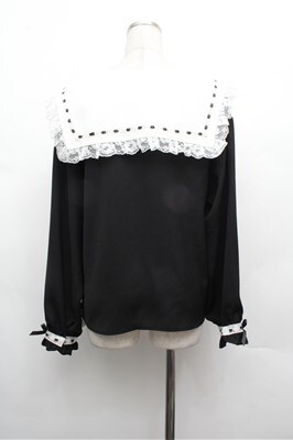 Secret Honey / フリル襟ブラウス 黒x白 S-26-02-20-035-CA-TS-AS-ZS