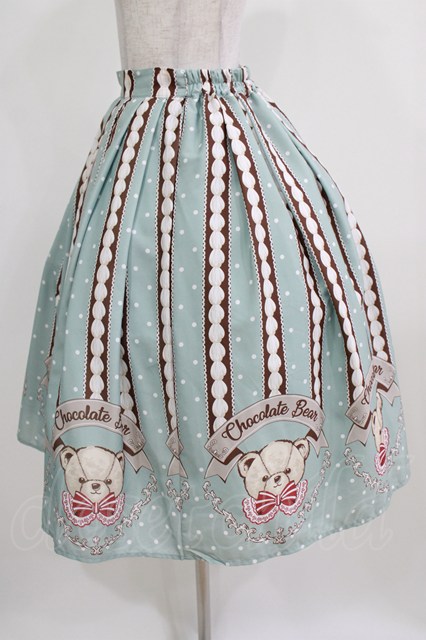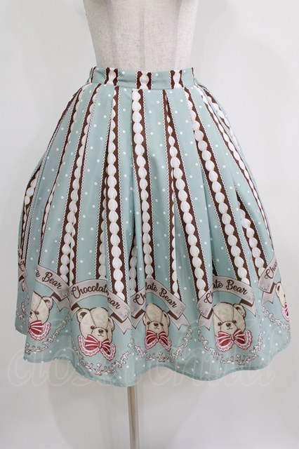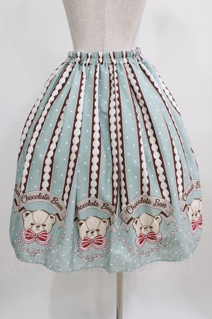 axes femme kawaii / チョコベア柄スカート M ミント H-26-02-22-006-AX-SK-NS-ZH