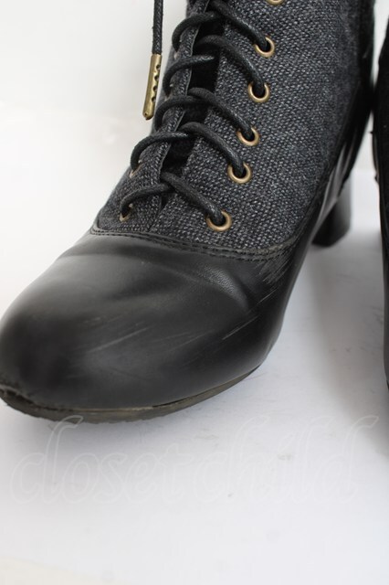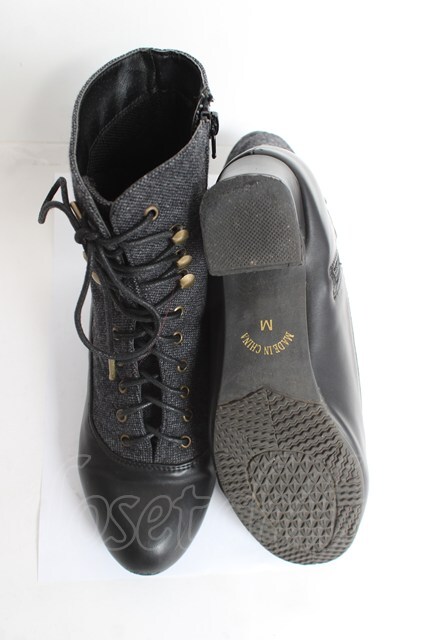 an another angelus / 細レースアップツイードコンビブーツ M グレー Y-26-02-23-043-CA-SH-SZ-ZY [2100070000062878-Y-26-02-23-043-CA-SH-SZ-ZY]