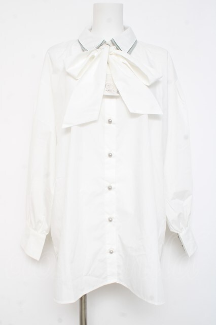 axes femme / バイカラーリボンシャツ 白 Y-26-02-23-054-AX-BL-SZ-ZY