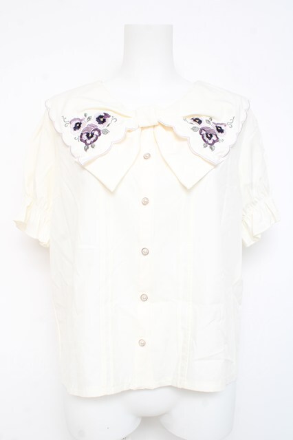 axes femme POETIQUE / パンジー刺繍リボン襟ブラウス 生成り Y-26-02-23-055-AX-BL-SZ-ZY