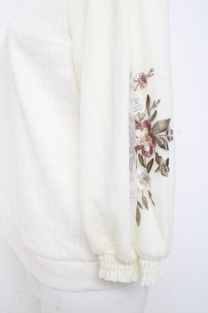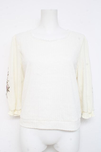 axes femme / 花刺繍チュール袖七分袖プルオーバー F オフシロ Y-26-02-23-058-AX-TO-IG-ZY