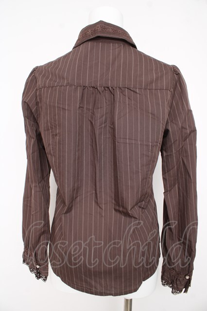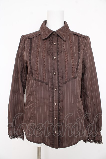 axes femme / 王冠ボタンストライプフリルブラウス ブラウン Y-26-02-23-085-AX-BL-SZ-ZY [2100070000063026-Y-26-02-23-085-AX-BL-SZ-ZY]
