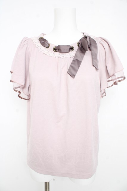 axes femme POETIQUE / ネックリボンデザインカットソー M ピンク Y-26-02-23-089-AX-TO-IG-ZY