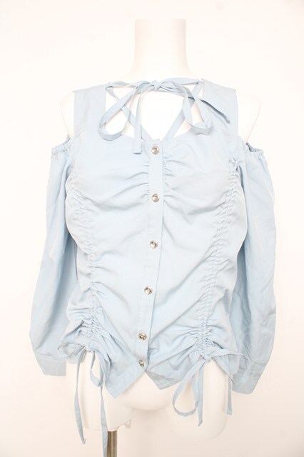 axes femme POETIQUE / ドロストデザイン肩あきブラウス M サックス Y-26-02-23-102-AX-BL-SZ-ZY [2100070000062844-Y-26-02-23-102-AX-BL-SZ-ZY]
