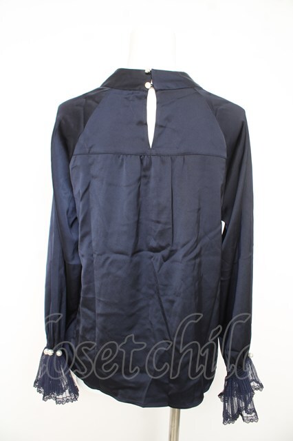 axes femme / パールデザインサテンブラウス F ネイビー Y-26-02-23-105-AX-BL-IG-ZY