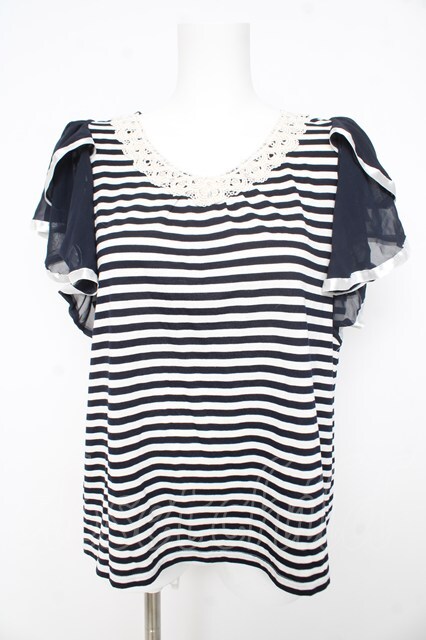 axes femme / フレア袖ボーダープルオーバー M 紺 Y-26-02-23-107-AX-TO-SZ-ZY [2100070000062687-Y-26-02-23-107-AX-TO-SZ-ZY]