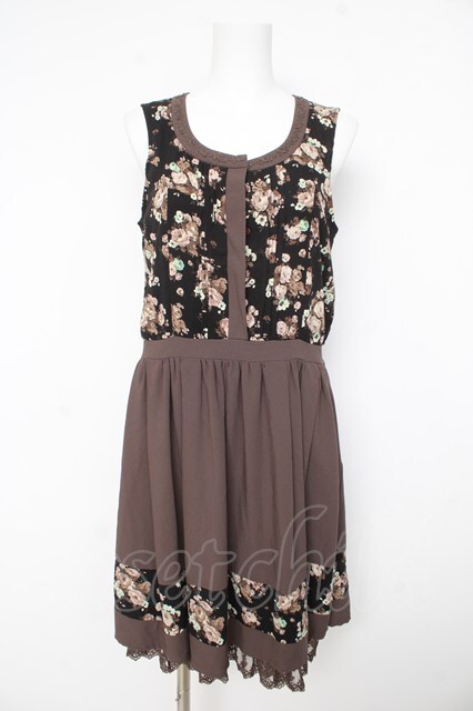 axes femme / 花柄x無地ラインワンピース M 茶 Y-26-02-23-148-AX-TO-SZ-ZY [2100070000062675-Y-26-02-23-148-AX-TO-SZ-ZY]