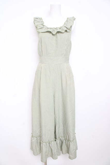 axes femme POETIQUE / ストライプフリルコンビネゾン M グリーン Y-26-02-23-162-AX-OP-SZ-ZY