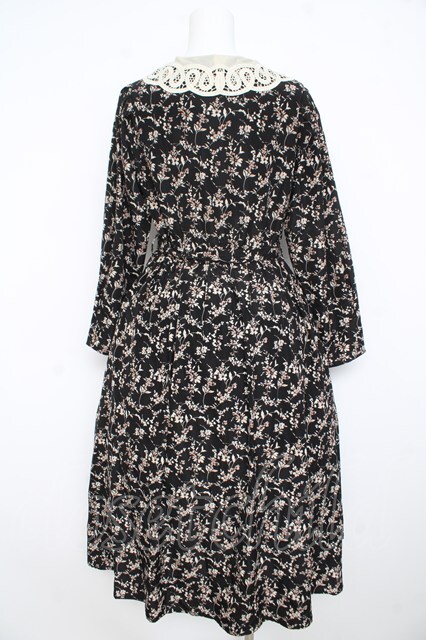 an another angelus / レース衿カシュクール花柄ワンピース 黒 Y-26-02-23-194-CA-OP-SZ-ZY