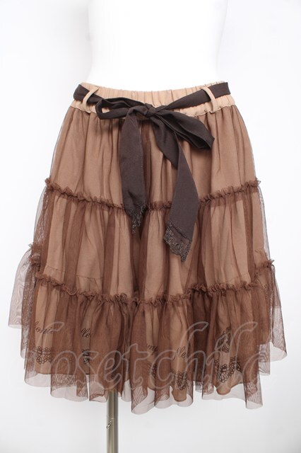 axes femme / パフュームボトルチュールボリュームスカート 茶 Y-26-02-23-210-AX-SK-SZ-ZY