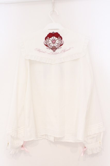 Amavel / Magical Ribbonフリルブラウス M シロ×ピンク O-26-02-23-046-CA-BL-OW-OS
