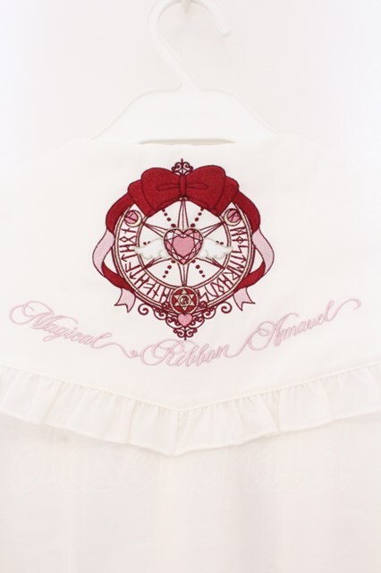 Amavel / Magical Ribbonフリルブラウス M シロ×ピンク O-26-02-23-046-CA-BL-OW-OS [2100080000075303-O-26-02-23-046-CA-BL-OW-OS]