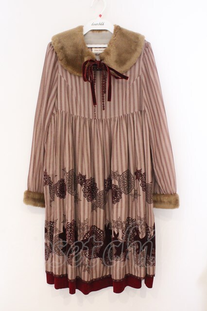 Jane Marple / ウィンターラビットワンピース M ブラウン×ボルドー O-26-02-23-017-JM-OP-OW-OS [2100080000075147-O-26-02-23-017-JM-OP-OW-OS]
