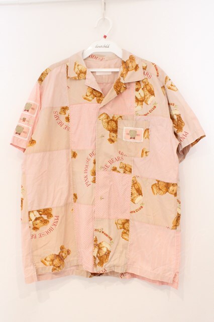 PINK HOUSE / くまさん&ギンガムチェックワッペン半袖シャツ L ピンク O-26-02-24-024-LO-BL-IG-OS