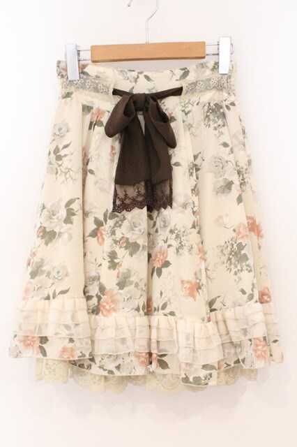 axes femme / ローズプリントスカート M 生成り×ブラウン O-26-02-24-068-AX-SK-IG-OS