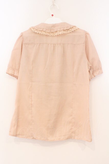 axes femme / シャドーストライプパフスリーブブラウス M ピンク×ブラウン O-26-02-24-076-AX-BL-IG-OS