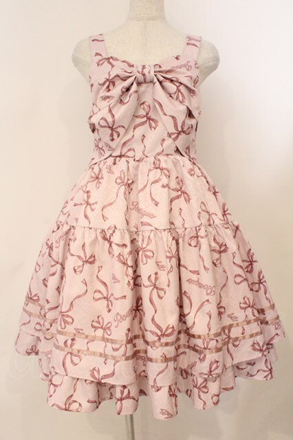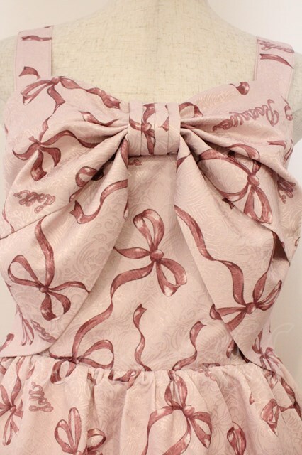 axes femme POETIQUE / リボン柄ドールジャンパースカート M ピンク O-26-02-24-057-AX-OP-IG-OS