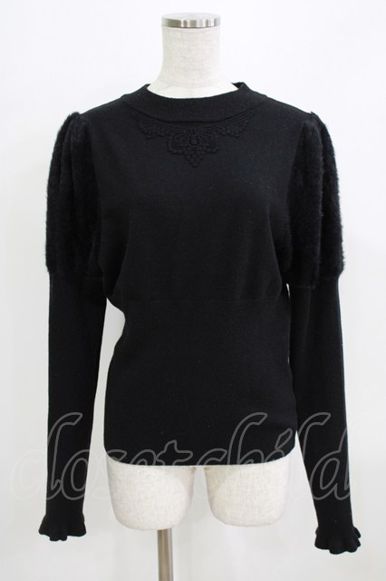 Kurumi Collaboration / 袖フェザーニットプルオーバー L ブラック H-26-02-24-056-GO-TO-NS-ZH [2100030000087920-H-26-02-24-056-GO-TO-NS-ZH]