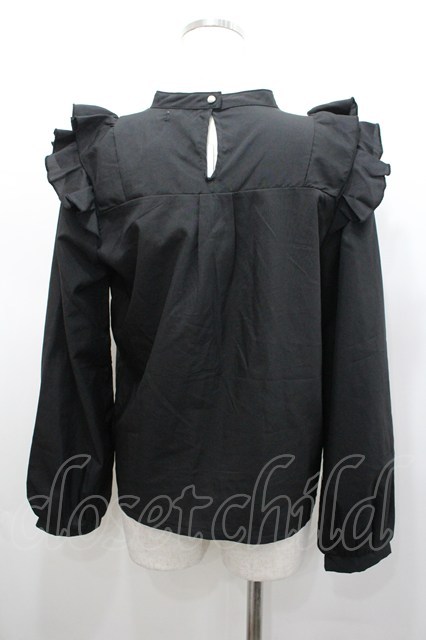 axes femme / チョーカー風ローズ刺繍ブラウス F 黒 I-26-02-23-014-AX-BL-TE-ZI