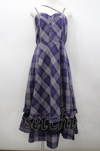 axes femme / タータンチェックジャンスカ 紫 I-26-02-23-079-AX-OP-HR-ZI