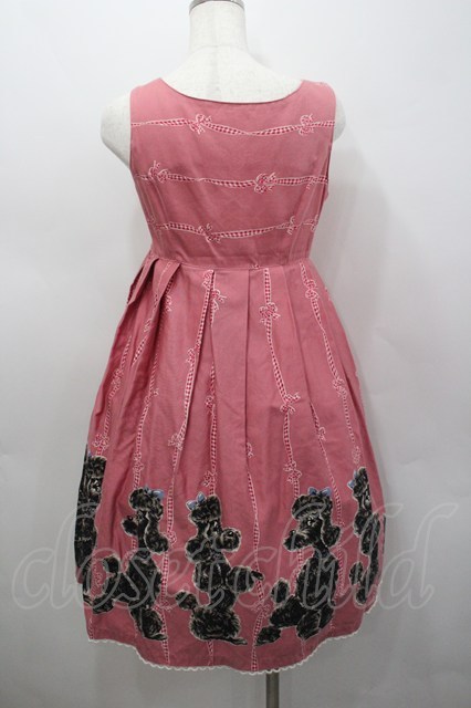 Emily Temple cute / プードルギンガムリボンジャンパースカート ピンク I-26-02-23-037-ET-OP-TE-ZI
