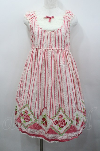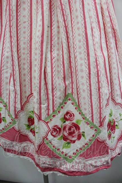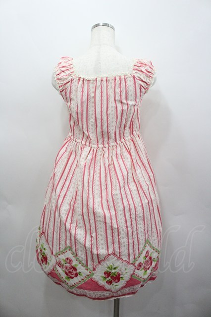 Shirley Temple / 薔薇&苺ストライププリントワンピース ピンク×オフ I-26-02-23-044-ET-OP-TE-ZI