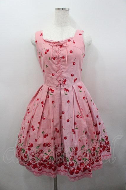 Emily Temple cute / チェリープリントジャンパースカート ピンク I-26-02-23-042-ET-OP-TE-ZI