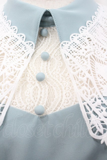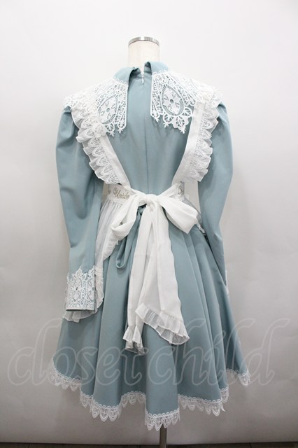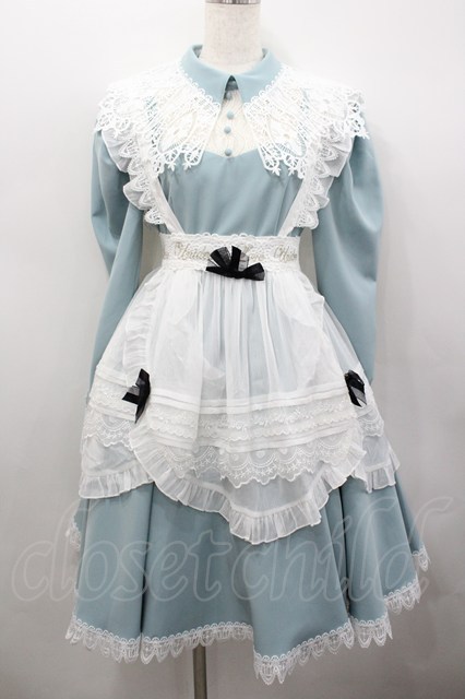 Unideer / レース襟シフォンエプロン付き長袖ワンピース 白xサックス I-26-02-23-056-LO-OP-SA-ZI [2100060000051444-I-26-02-23-056-LO-OP-SA-ZI]