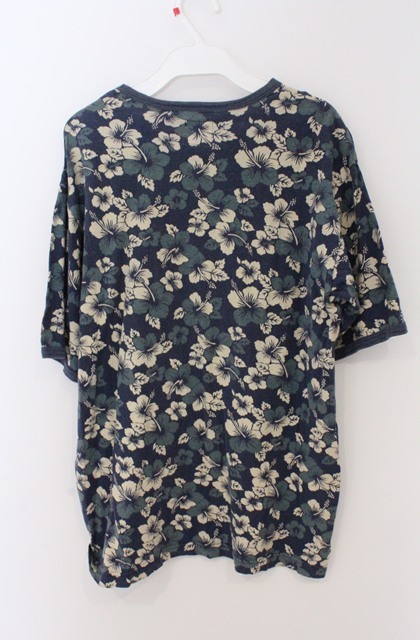 Karl Helmut / ハイビスカス柄Tシャツ L ネイビー O-26-02-24-1032-EL-TO-IG-OS