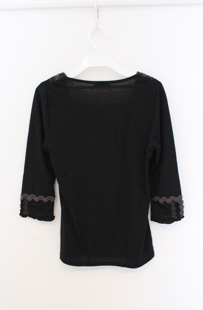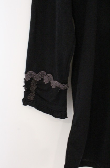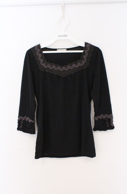 axes femme / フラワーレース配色7部袖カットソー M クロ O-26-02-24-1021-AX-TO-IG-OS