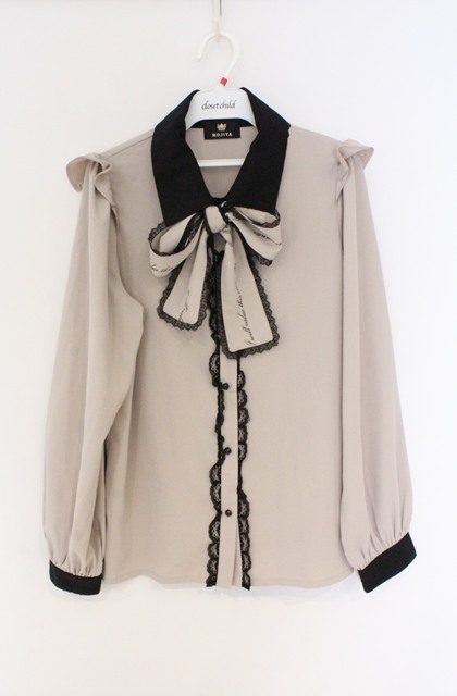 Rojita / ロゴリボンブラウス ベージュ×クロ O-26-02-24-1001-LO-OP-IG-OS