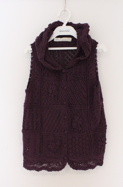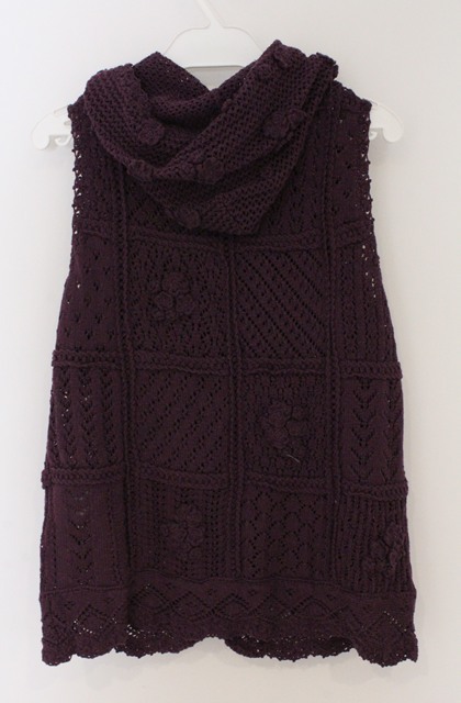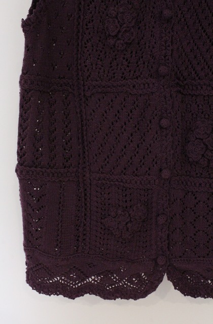 PINK HOUSE / カメリアモチーフパッチワークニットフードベスト パープル O-26-02-24-1039-LO-TO-IG-OS