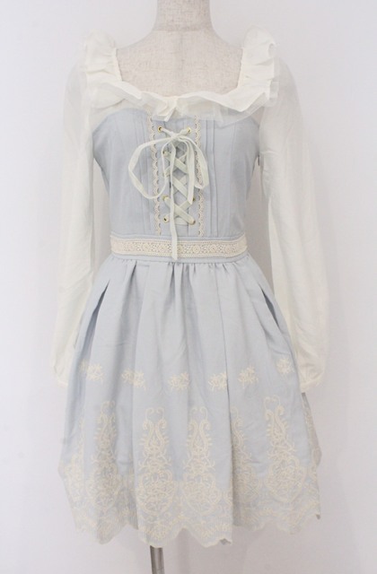 LIZ LISA / レース装飾切り替えワンピース O サックスxシロ O-26-02-24-1059-LO-OP-YM-OS [2100080000069772-O-26-02-24-1059-LO-OP-YM-OS]