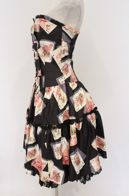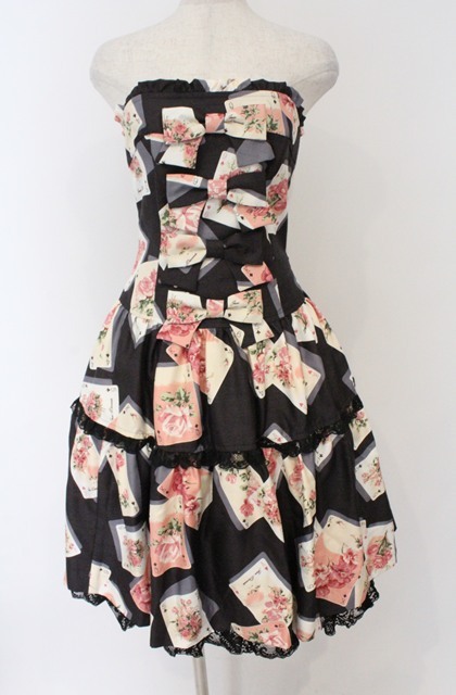 JESUS DIAMANTE / アントワーヌベアワンピ 38 トランプ薔薇柄黒 O-26-02-24-1044-JE-OP-OW-OS