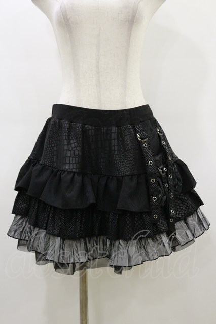 Qutie Frash / 異素材フリルスカート 黒 H-26-02-25-1031-QU-SK-KB-ZH [2100030000088155-H-26-02-25-1031-QU-SK-KB-ZH]